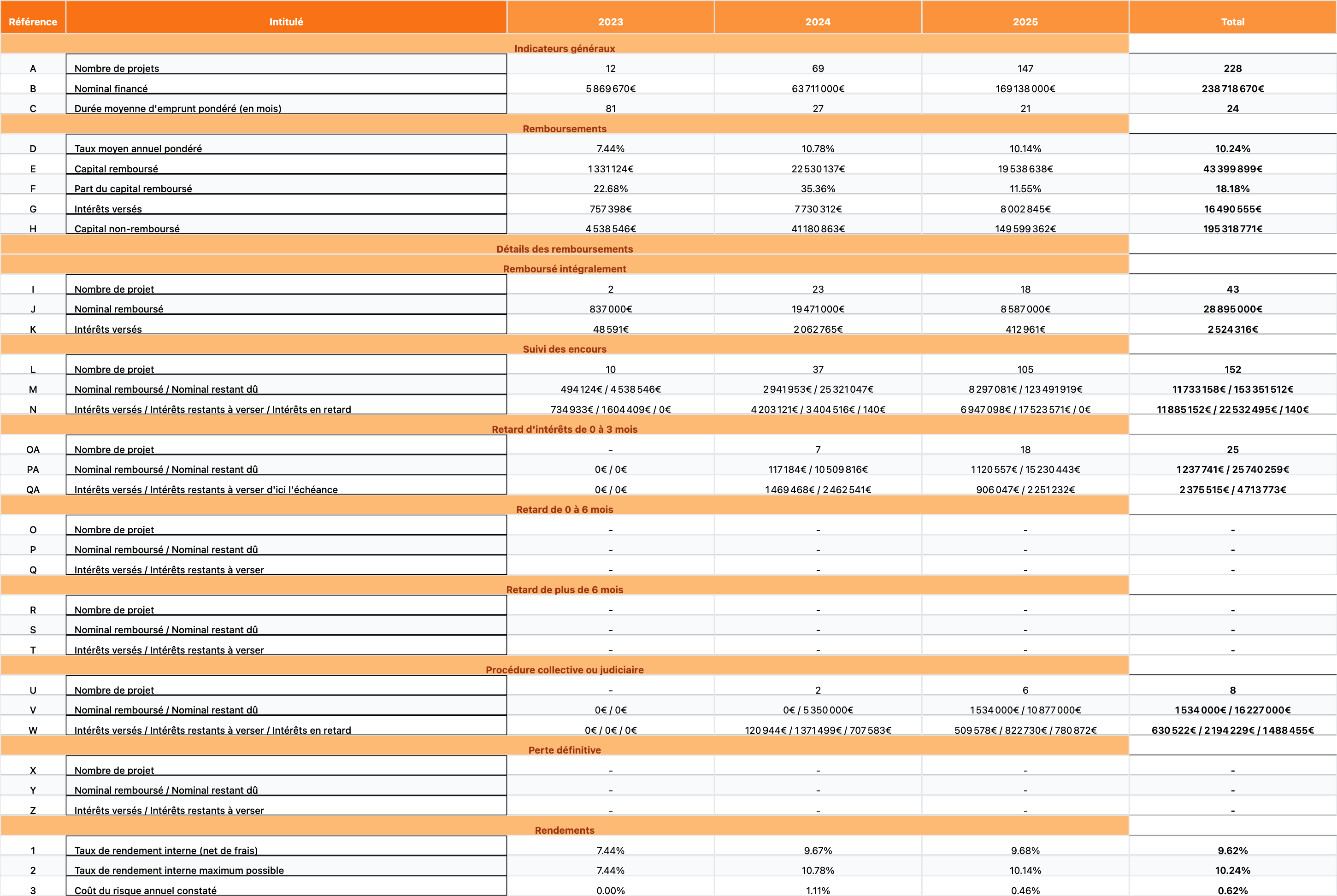 AVERTISSEMENT : Nos offres comportent certains risques, notamment le risque de perte totale ou partielle des sommes investies. Les performances passées ne préjugent pas des performances futures. Vous pouvez consulter nos résultats et nos indicateurs de performance directement sur la page *Performances*. Si vous avez la moindre question sur les risques associés à nos projets, nos équipes sont disponibles pour y répondre.